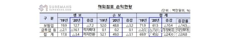 보험사 해외점포 순익 35% 급감…코로나·자연재해 겹쳐