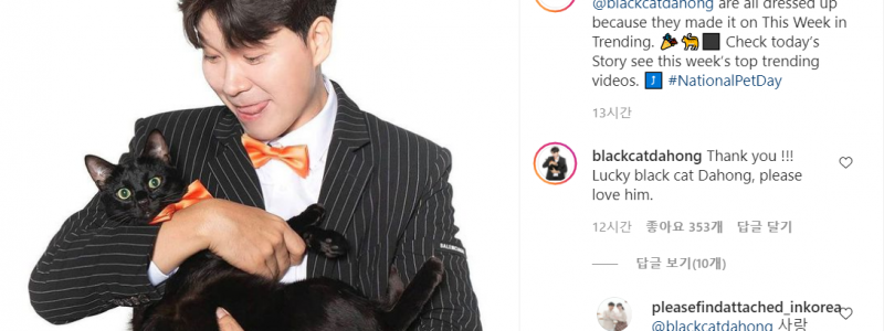 [스포츠서울 박효실기자] 반려동물의 날(4월11일)을 맞이해 유튜브 공식 SNS가 코미디언 박수홍과 그의 반려묘 다홍이를 소개해 화제를 모으고 있다. 반려동물의 날(National Pet Day)은 미국의 동물복지운동가 콜린 페이지가 반려동물이 인간에게 알려주는 기쁨을 기억하기 위해 만든 기념일로 2006년 설립됐다. "사지 마세요. 입양하세요"가 대표적인…