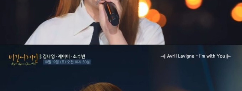 가수 제이미가 소속사 이적 후 ‘비긴어게인’으로 본격적인 음악 행보의 시작을 알린다. 제이미는 오는 19일 방송되는 JTBC 음악 예능프로그램 ‘비긴어게인 오픈마이크’에서 대전 대청댐 버스킹 공연을 펼친다. 지난 7일 공개된 티저에서 Avril Lavigne의 ‘I'm with You(아임 위드 유)’를 부르는 장면이 일부 공개됐고, 제이미의 독보적인 음색…