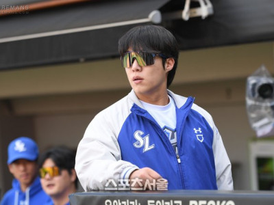 삼성 원태인이 23일 광주기아챔피언스필드에서 열리는 KIA와 2024 KBO 한국시리즈 1차전 서스펜티드 경기에 앞서 상대 훈련을 지켜보고 있다.2024. 10. 23.광주 | 최승섭기자 thunder@sportsseoul.com